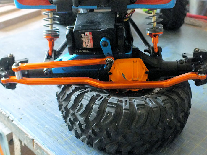 even more by machining some troughs underneath. The ball ends run as smooth as it can be with no hang ups anywhere at all, and compared to the on Axial steering linkage, there is zero flex so the steering is now 100% true.