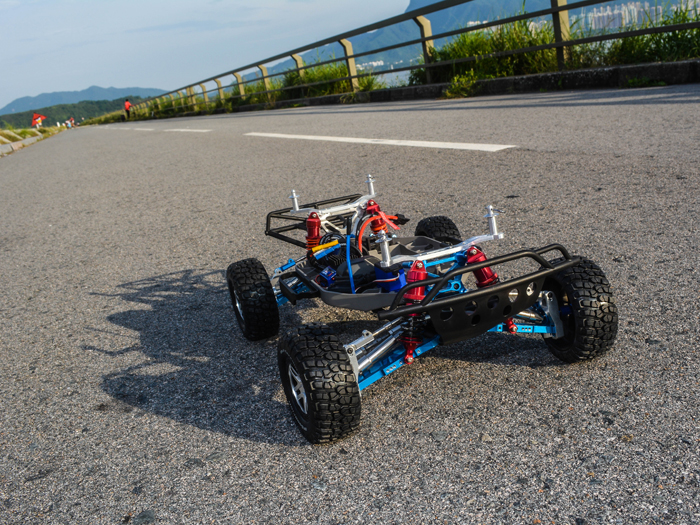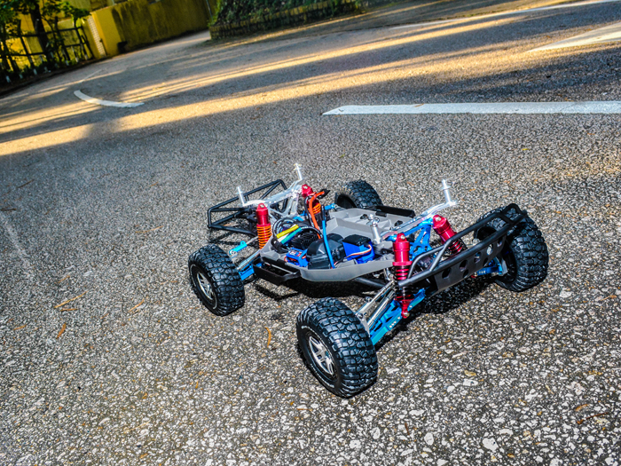 Slash 4X4 offers a TQi 2.4GHz radio system with switch-on-and-drive convenience and waterproof electronics, allowing you to use your slash in a lot of different conditions, such as mud, sand, asphalt and dirt, so you don’t have to worry that your ride height that much.