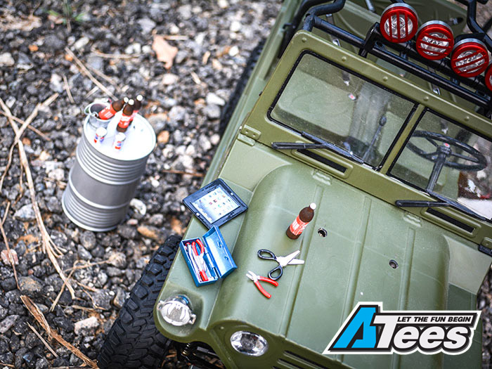We know our fans have the first, but we can't help you with the third. The second we've got covered because we've got a whole bunch of scale accessories in stock for those of you who want ever more scale for military or wilderness-themed 1/10 builds. We've got everything from miniature fuel drums to tool boxes and even detailed coke bottles.