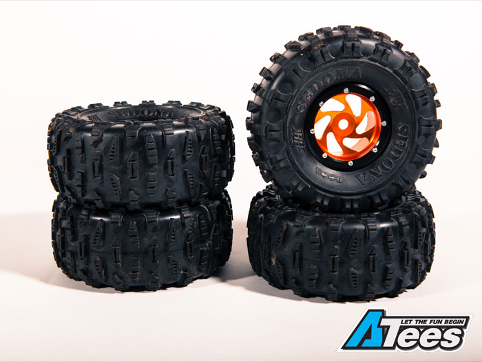 Boom Racing's Cyclone Giga 2.2 Beadlock Wheels are a tough set of beadlocks that are definitely as unique as they get. Anodized in a bright orange, these beadlocks are aptly named Cyclone for their design. If you want to brighten up your rig with some sweet wheels, and you're looking for something that will really pop, check these bad boys out! Here's a video of their installation.
