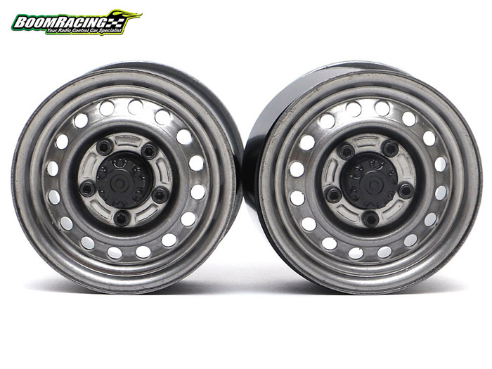 This new 1.55" 16-Hole Steelie Beadlock evolves from the 1.9" 16-Hole Stamped Steelies beadlock version. Besides being asthetically awesome, this new 1.55" steelie uses an all new Boom Racing aluminum XT500 separable 12mm wheel hub. 500 stands for 5-lug and 0mm offset. On top of being a very scale looking beadlock wheel and having separable wheels hubs, a bonus is that they are reversible for the "deep dish" look. Simply place the XT500 wheel hub on the front face and lock the hubs using the five bolts from the back side.