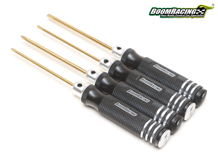 Boom Racing just released their newest toolset that includes two sizes of both Phillips and Flat Head screwdrivers.