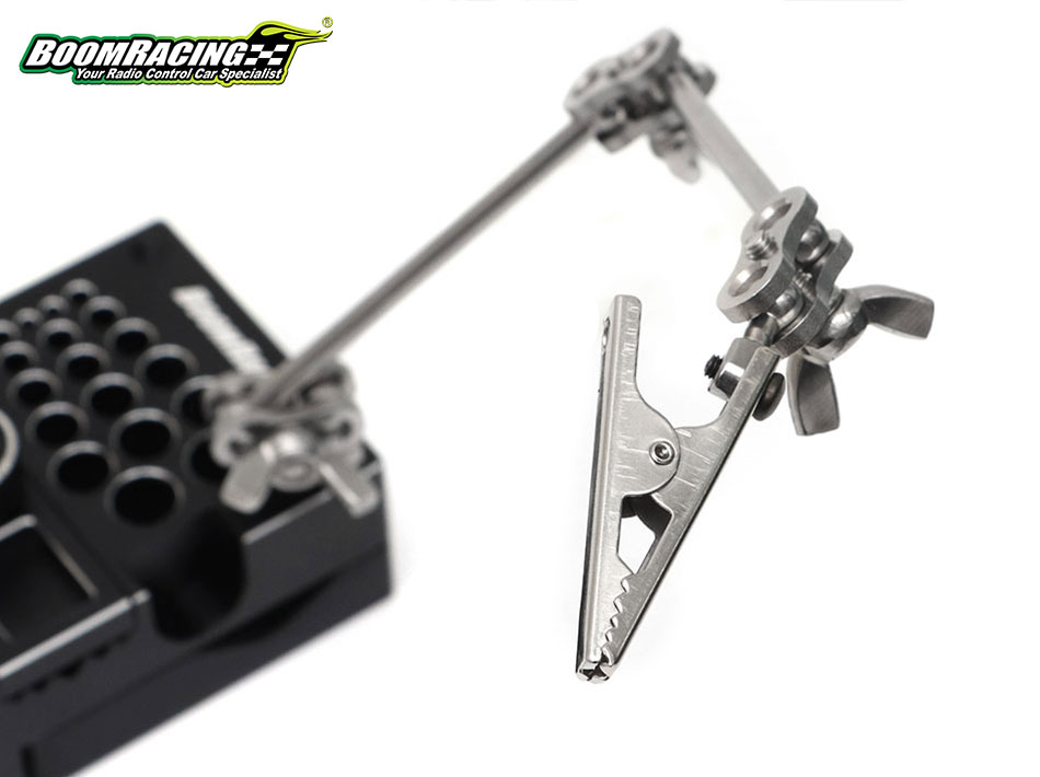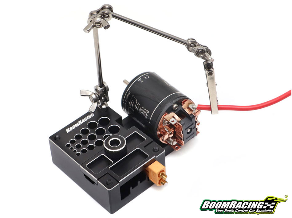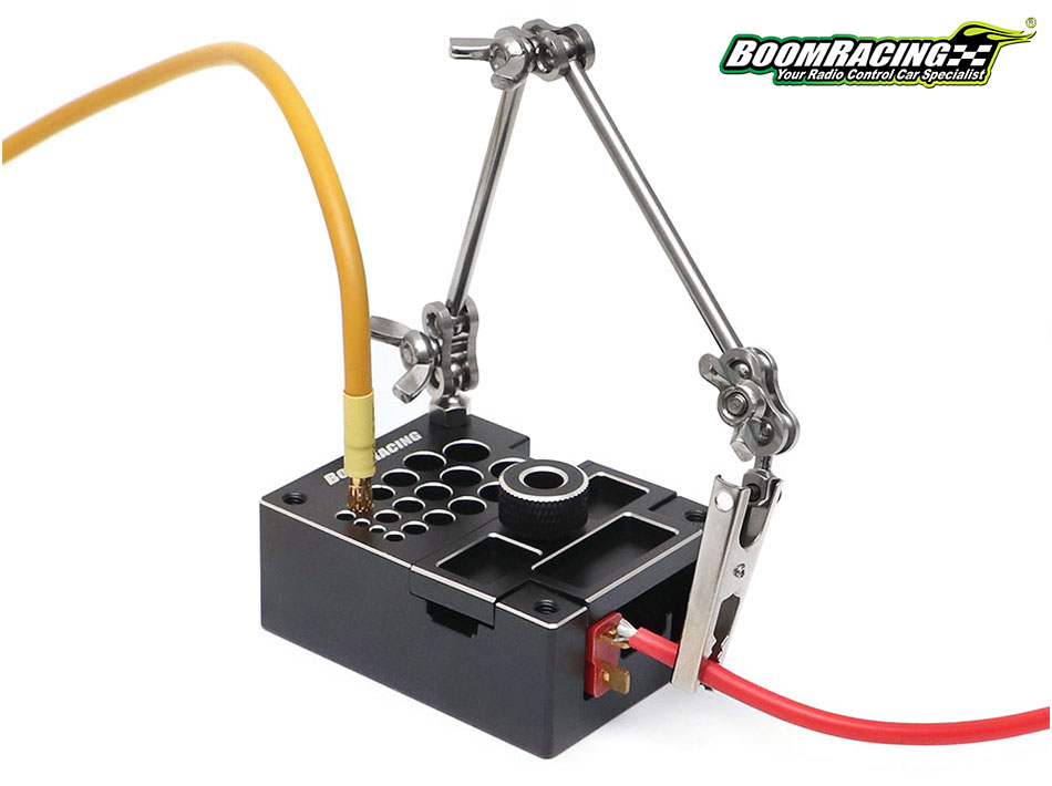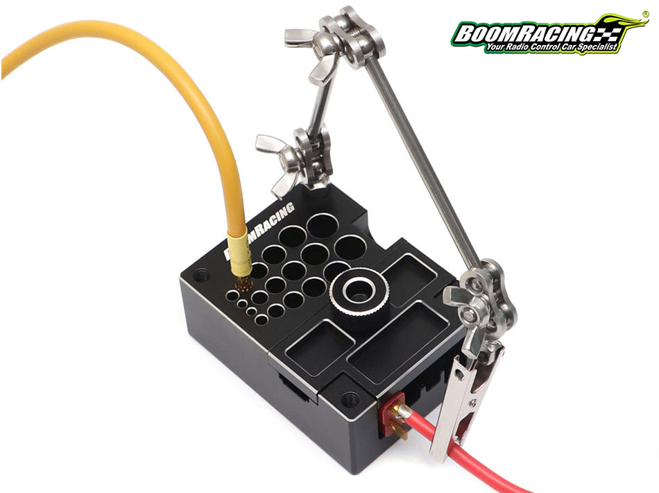 The jig is ideal for soldering all types of R/C connectors, especially for R/C cars with the built-in steel electric motor stand. It works with many of the common types of R/C connectors and gives you the freedom to move to get the best soldering angles, with a sturdy base and compact design.