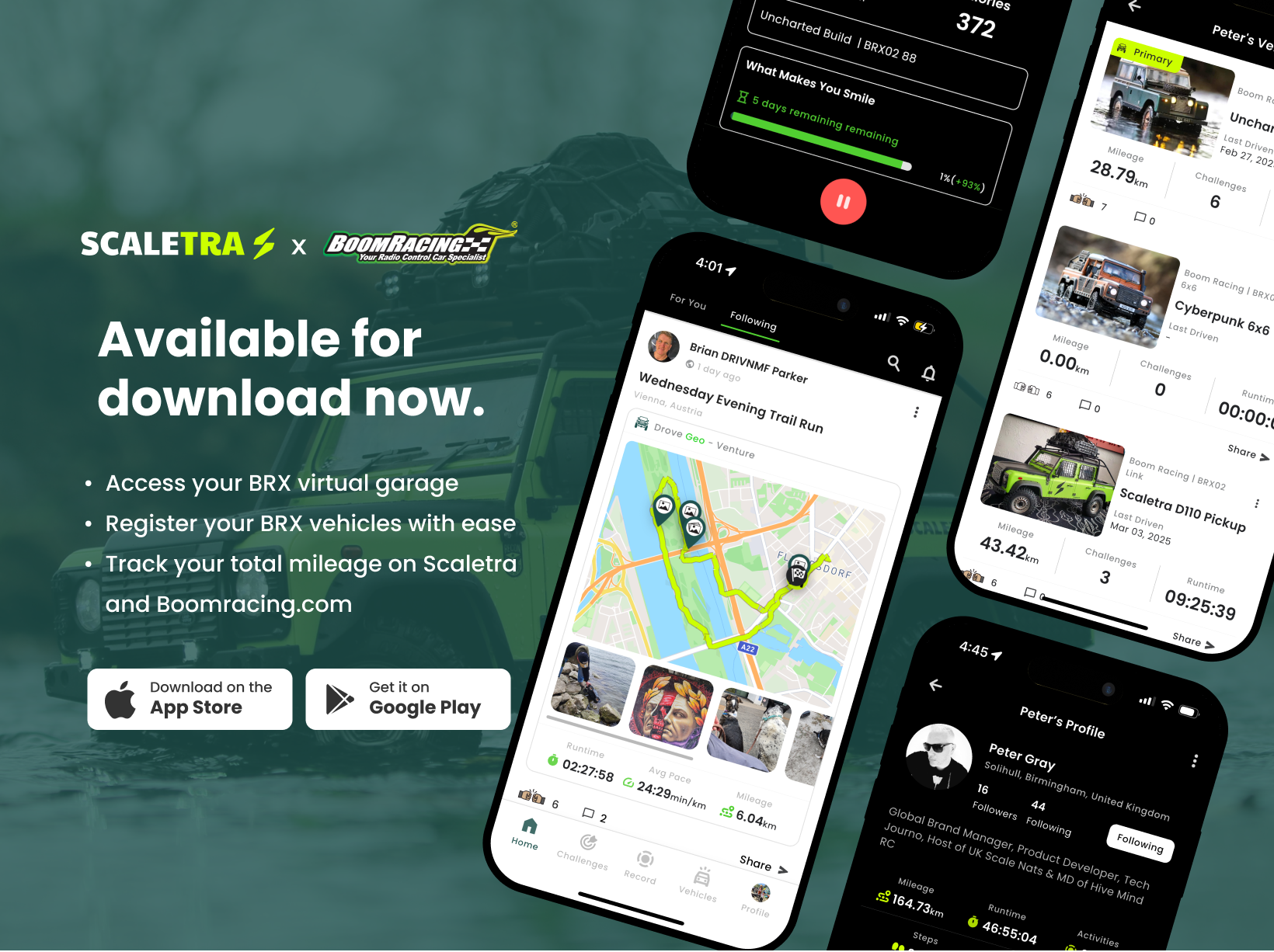 We are delighted to announce that Boom Racing is officially partnering with the newly launched Scaletra app to incorporate Boom Racing BRX vehicle registration, offering more benefits to new and existing owners. This collaboration aims to streamline the registration process and introduce new perks and regular challenges for BRX owners, enhancing the overall ownership experience.