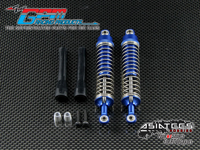If you're upgrading to these aluminum dampers, part# BMT3100F/R, you should also make sure the damper mount is strong enough. That's why GPM also has this part# BMT028, aluminum damper mount. This is uniquely designed by GPM that combines the damper mount with the body posts. This is not the traditional type of body post that you see normally, the body post are threaded with delrin buttons, which can be adjusted easily, eliminating the use of body clips.