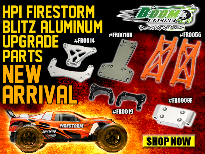 HPI has been famous for making quality RTR cars, following the Savage X 4.6, HPI now makes the 2WD Firestorm 10T truck with a 2.4GHz radio system. The Firestorm includes both the nitro versions and flux versions. The Nitro version is built with high performing 3.0cc G3.0 HPI nitro recoil starter engine. The E-Firestorm Flux is also durable and fast with a top speed of over 50 mph. Upgrade your Firestorm with Boom Racing aluminum parts will certainly take your truck to the next level.