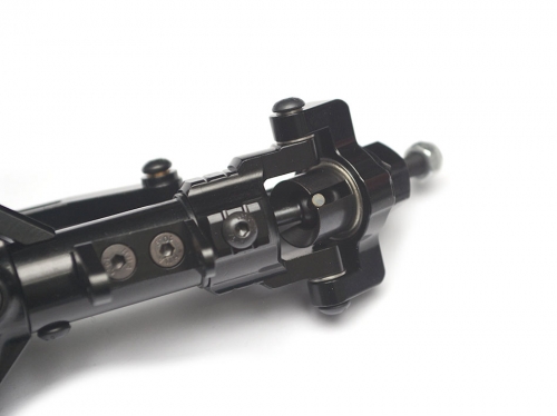 The front axle is set up for Y link (3 link) and the rear is a 4 link set up. If you want to use 4 link setup on the front axle the servo cannot be mounted on the axle