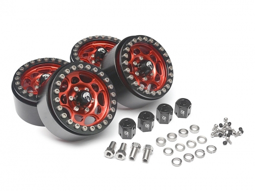 Sandstorm KRAIT™ 1.9 Aluminum Beadlock Wheels with 8mm Wideners (4) [Recon G6 Certified] Red by Boom Racing