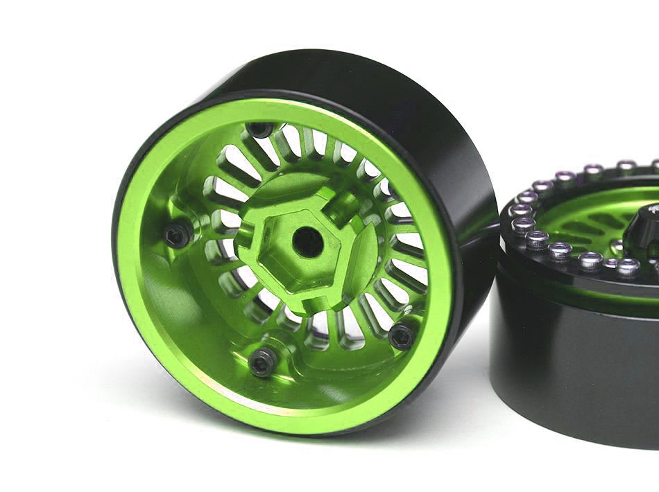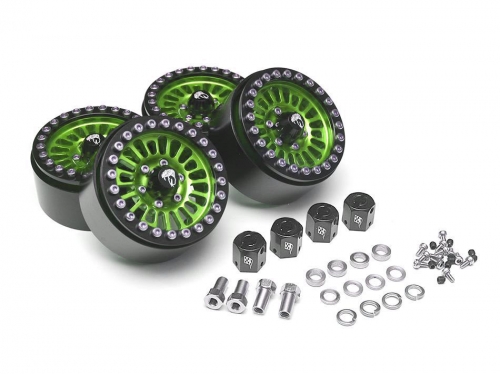 Venomous KRAIT™ 1.9 Aluminum Beadlock Wheels with 8mm Wideners (4) [Recon G6 Certified] Green by Boom Racing