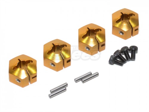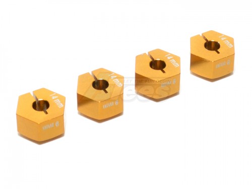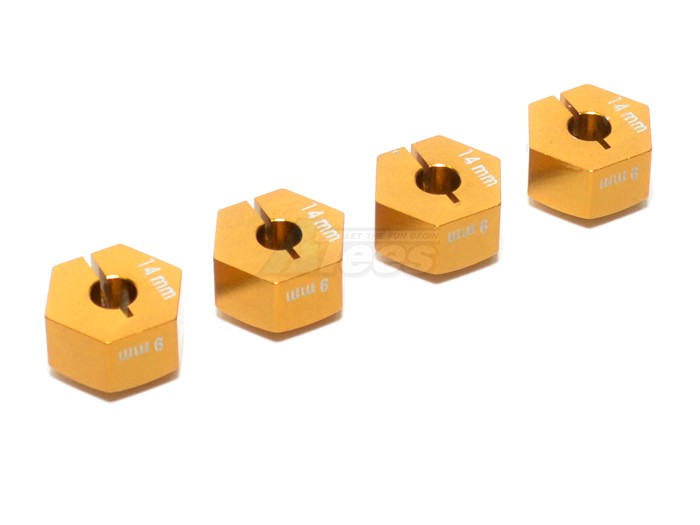 - Factory description: GPM Racing Axial EXO Aluminum Hex Adapters -4pcs Diameter: 14mm Thickness 9mm Use 2mm Pins
