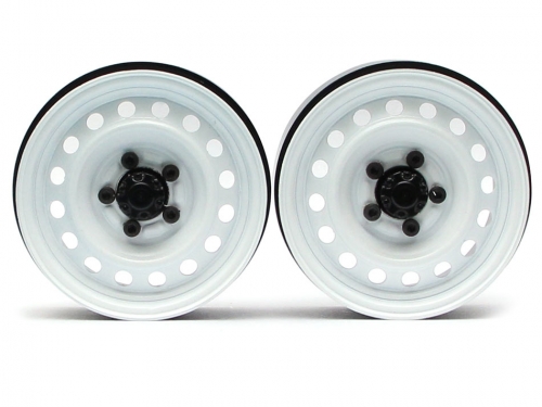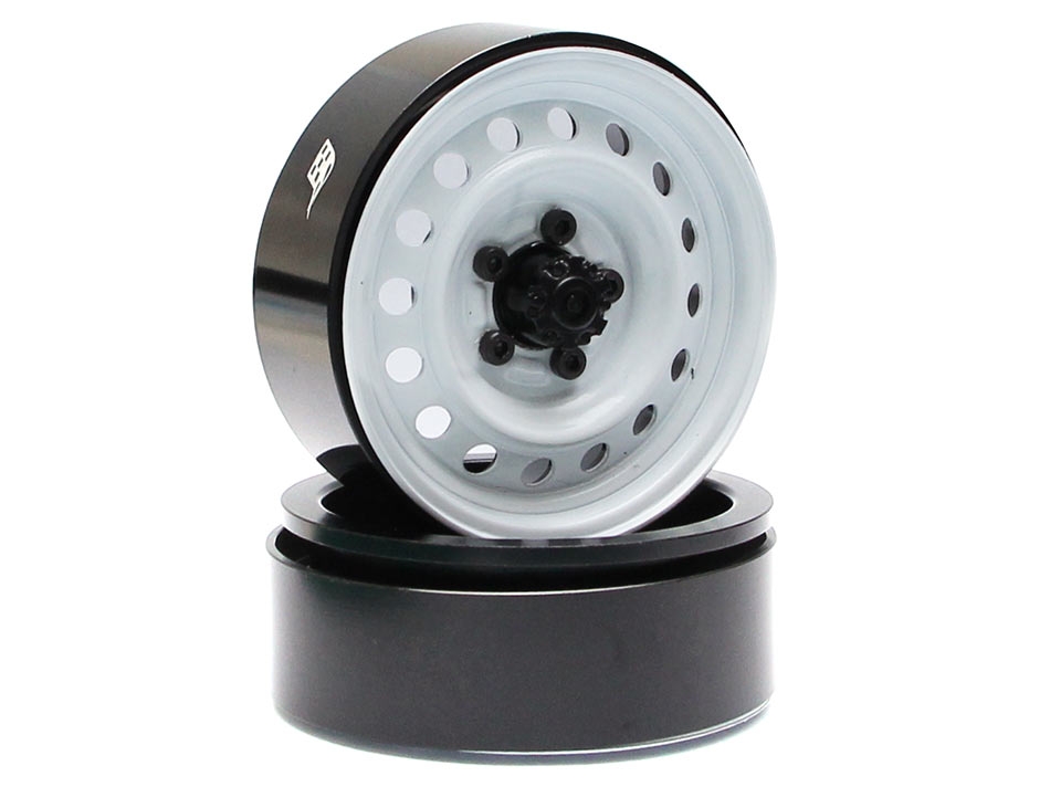 1.9 Narrow 21mm Badass Classic 16-Hole Steelie & CNC Aluminum Beadlock Wheels w/ Center Hubs (Front) 2pcs White by Boom Racing