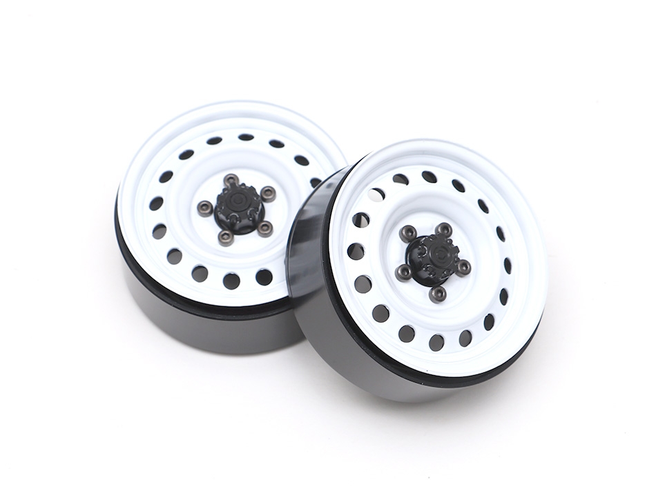 1.9" Narrow 16-Hole Classic Steelie Reversible Beadlock Wheels (Front) w/ XT504 Hub (2) White by Boom Racing