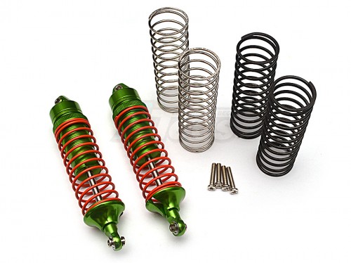 Aluminum Rear Adjustable Spring Damper With Aluminum Ball Top & Ball Ends - 1pr Set (1.3mm, 1.5mm, 1.7mm Coil Spring & 4mm Thick Shaft) Green