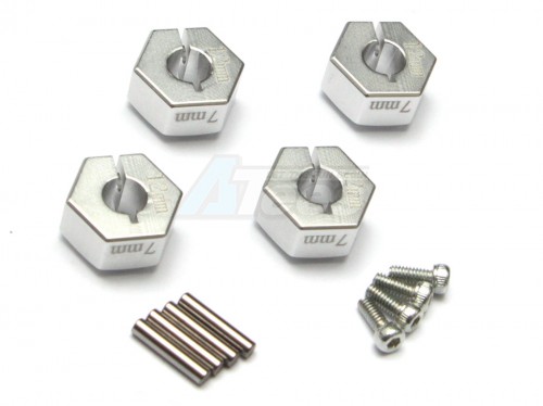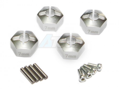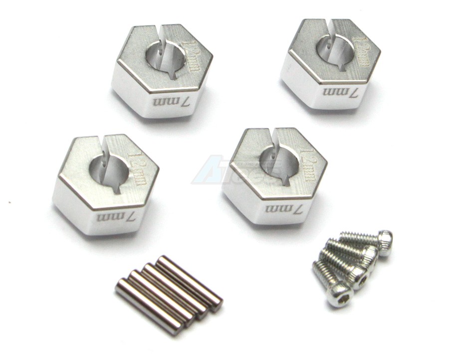 Aluminum Hex Adapter (12MMx7MM) - 4 Pcs Set For Axial EXO/SCX10/Wraith Silver