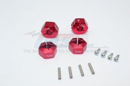Aluminum Hex Adapter (12MMx7MM) - 4Pcs Set For Axial Exoscx10Wraith Red