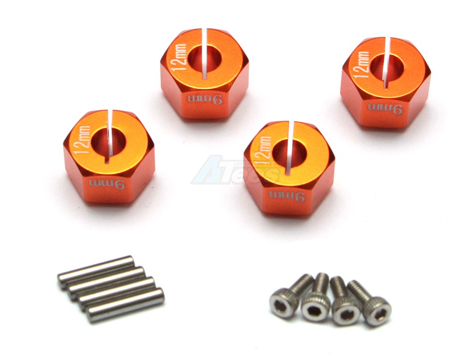 Aluminum Hex Adapter (12mmx9mm) - 4pcs Set For Axial Exoscx10wraith Orange