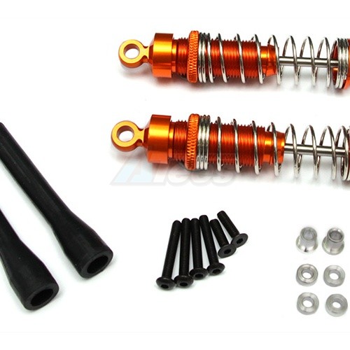 Aluminum Ball Top Damper (85mm) With 1.2mm Coil Spring & Aluminum Collars & Washers & Screws & Dust-proof Black Plastic Cover - 1pr Set Orange by GPM Racing