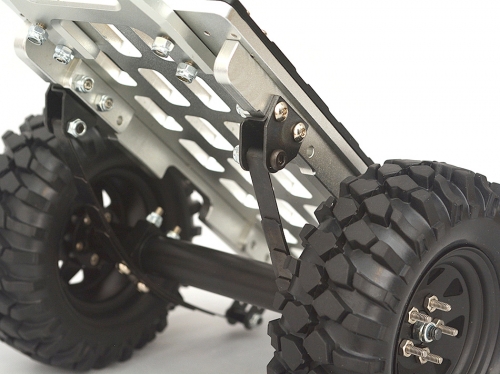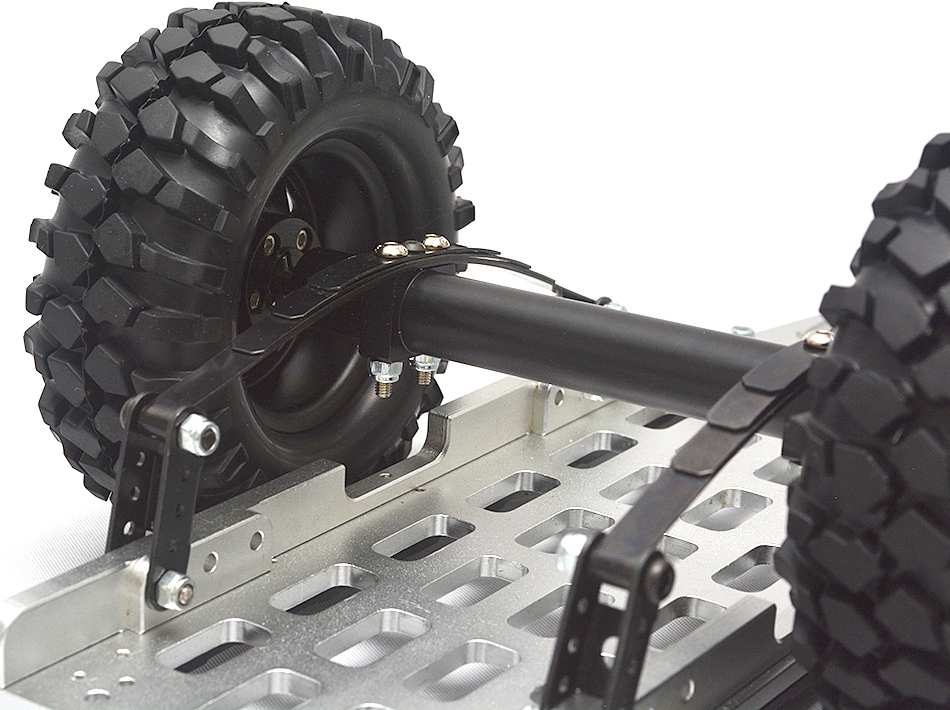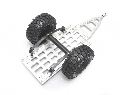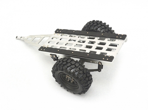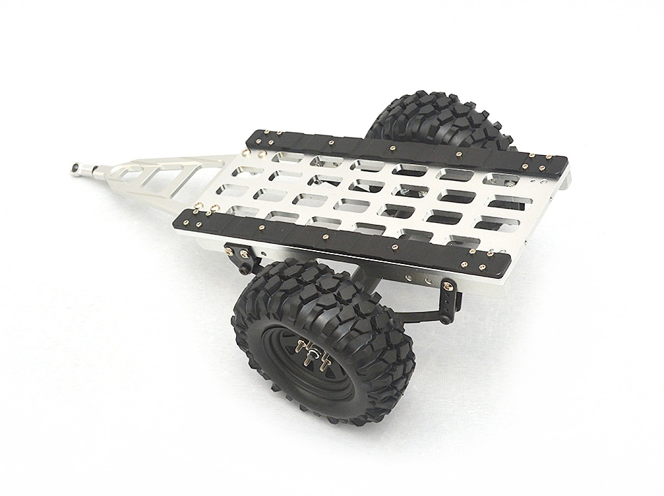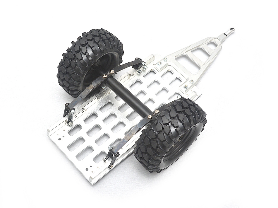 Scale trailer base to build a tent trailer, camper or anything your mind can imagine. Item comes with leaf springs, bead-lock wheels, 2 x 1.55 crawler tires and a dual axle entirely made from anodized aluminum. - Product weight: 965.00 grams