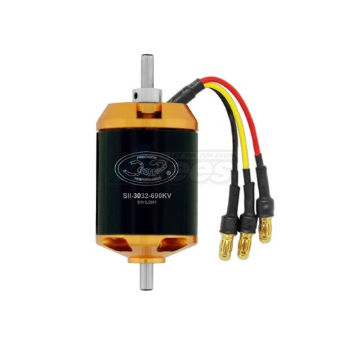 All Scorpion SII-30mm aeroplane brushless motors come with Scorpion's new 2.5mm male Bullet style connectors already attached, and include a complete hardware package that contains the following: 3 matching female Bullet connectors for your speed controller, a cross style backplate mount with 4 screws, and a threaded shaft prop adapter.