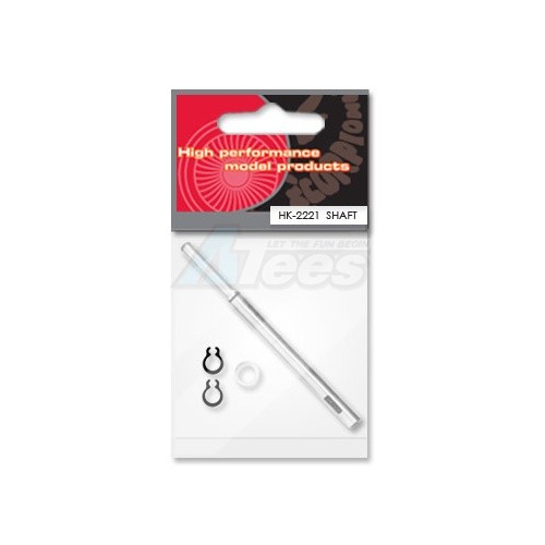 The shaft for the HK-2221 series helicopter motors measures 4mm in diameter, and is 58.7mm in long. The pinion end of this shaft is ground down to 3.17 mm. The shafts can be cut shorter with a Dremel tool and a cut-off wheel if necessary to fit other motors.