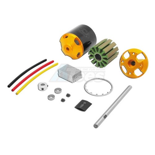 • Rotor assembly with gold electro-coated front housing, black electro-coated flux ring, and pre-installed 5mm motor shaft with retaining collar.