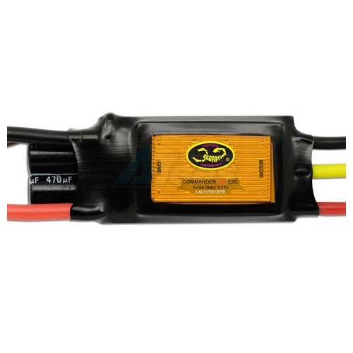 The Commander 4S SBEC series ESC(V3) operates from 6 to 17V. It features switching BEC will convert the voltage from your battery packs to 5V to power your receiver and servos. The Commander SBEC will deliver 3 Amps of continuous current with 5 Amps bursts. And can handle up to 4 digital servos or 5 standard servos on fix wing models. With a Switching type BEC, the BEC is not needed to de-rate as the input voltage increases. The full 3 Amps of BEC current is available for input between 2-cell to 4-cell Lipo operation.