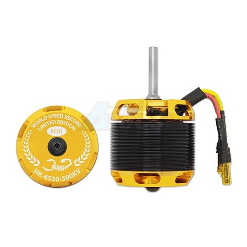 Each of the new HK-4530-500KV Limited Edition motor is wound with a single strand of 1.5mm wire for the highest possible efficiency. This motor is capable of running continuously at an input power of 4800 watts at 115 amps, and can handle peak inputs of 11000 watts and 250 amps for 2 seconds.