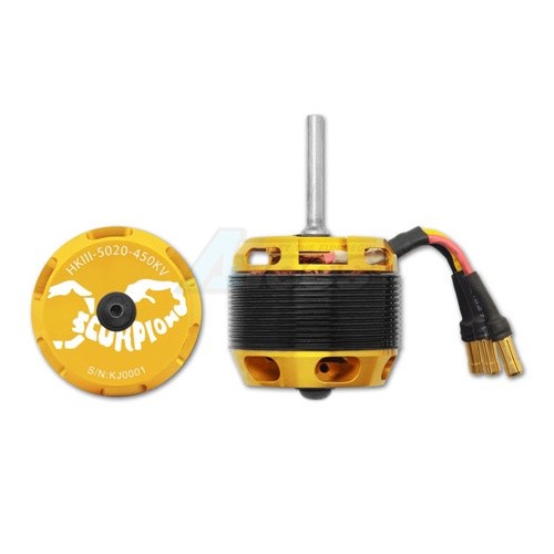 The Scorpion HKIII-5020-450 brushless motor is designed for 700 class Electric Helicopters, and for people that want to convert their .90 size glow helicopter to electric power. This motor has a maximum continuous power rating of 3770 watts at 85 amps, and a peak power rating of 5320 watts at 120 amps! The larger diameter 50mm stator allows these motors to produce insane amounts of torque.