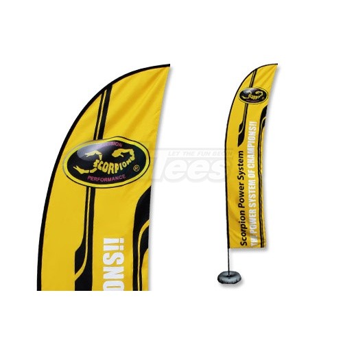 • The Scorpion Beach Flag is come with an all-in-one package and easy to install. The dimension of Scorpion Beach Flag is around 75cm width x 400cm height, printed with our Scorpion logo. Heavy enough to last, but light enough to fly in light wind.