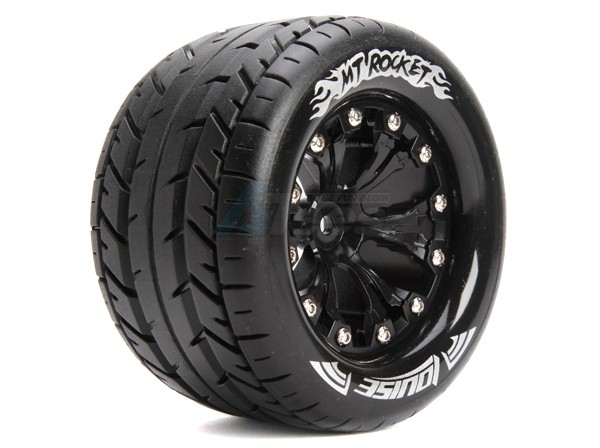 Louise 1/10 MT-Rocket Traxxas Style Bead 2.8 Monster Truck Tire Soft Compound / Black Rim / 0 Offset (rear) by Louise RC