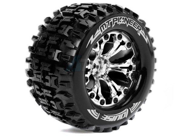 Louise 1/10 MT-Pioneer Traxxas Style Bead 2.8 Monster Truck Tire Soft Compound / Chrome Rim / 1/2 Offset (for JATO 2WD Rear) by Louise RC
