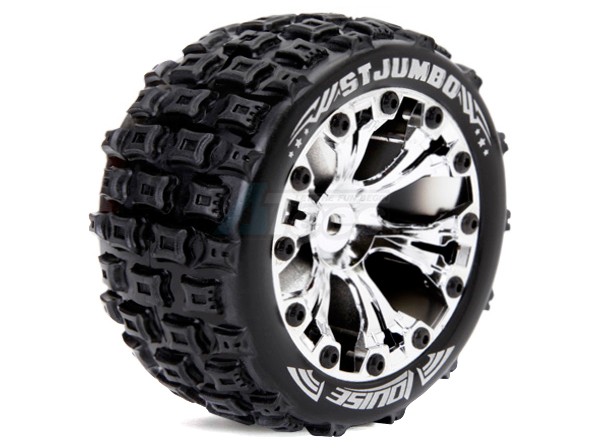 1/10 ST-JUMBO 2.8 Stadium Truck Wheel + Tire Set Traxxas Style Bead Soft Compound / Chrome / Bearing (for GP Stampede 2wd Front) by Louise RC