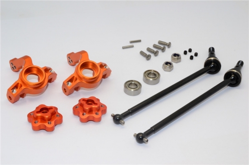 AxialYeti Parts & Upgrades Aluminium Front Knuckle Arm With Hex Adapters & Steel Front Cvd Drive Shaft - 6Pcs Set (Thickness Design) Orangeby GPM Racing