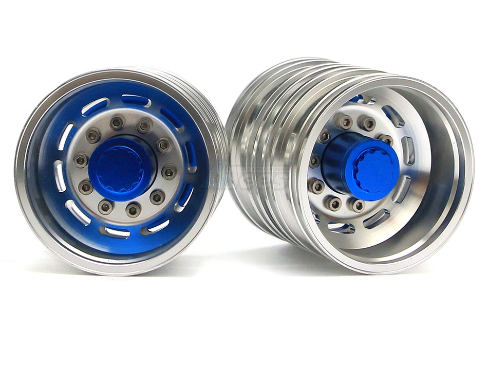 1/14 Tractor Trucks Rear Dually Wheels Double Attached Wheels (2 pcs) Version D Blue by Hercules Hobby