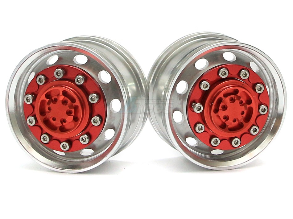 1/14 Tractor Trucks Front Wide Wheels (2 pcs) Version A Red by Hercules Hobby