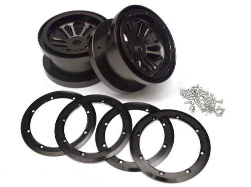 - Factory description: Boom Racing Axial Wraith Aluminum D-6spoke Bead Lock Wheels (2)