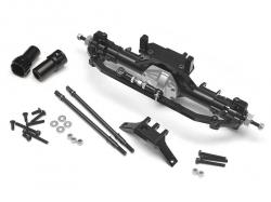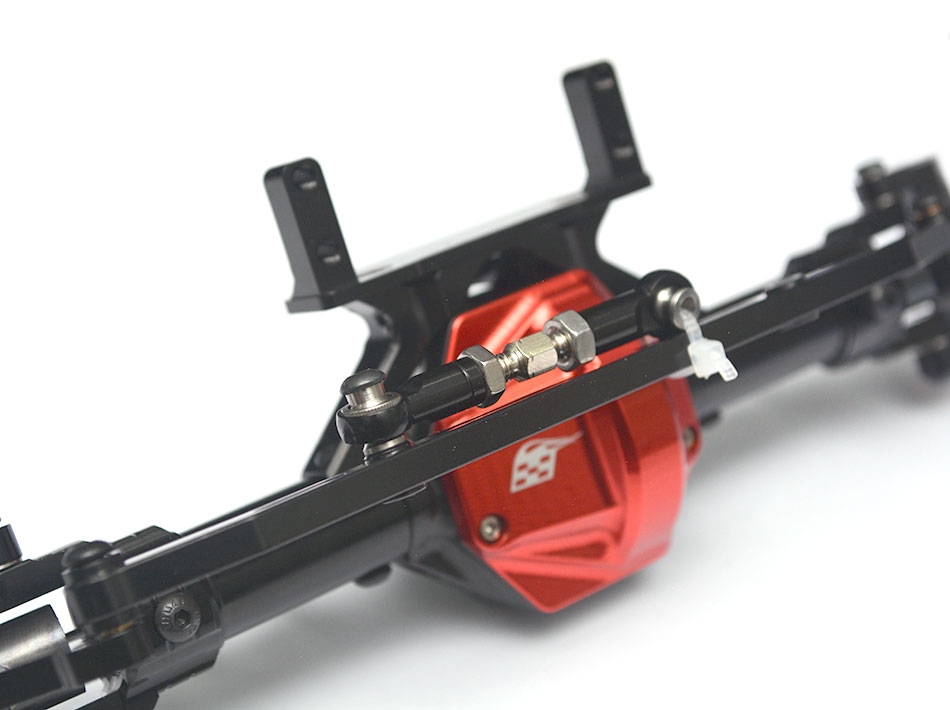 The front axle is set up for Y link (3 link) and the rear is a 4 link set up. If you want to use 4 link setup on the front axle the servo cannot be mounted on the axle