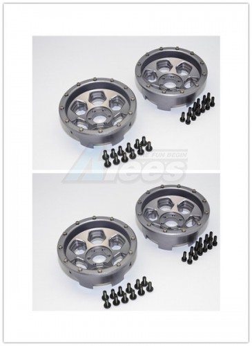 Aluminium Front & Rear 2.2 Wheels (6 Poles) - 2Pairs Set Gun Metal