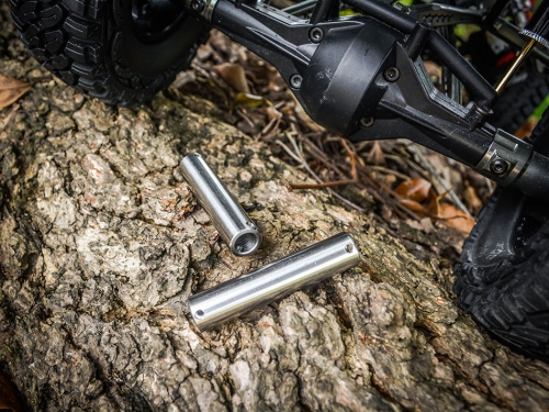 Need some extra weight for your 1/10 Axial SCX10? Boom Racing stainless steel Kronik axle tubes add some mad chrome to the crawler axles.