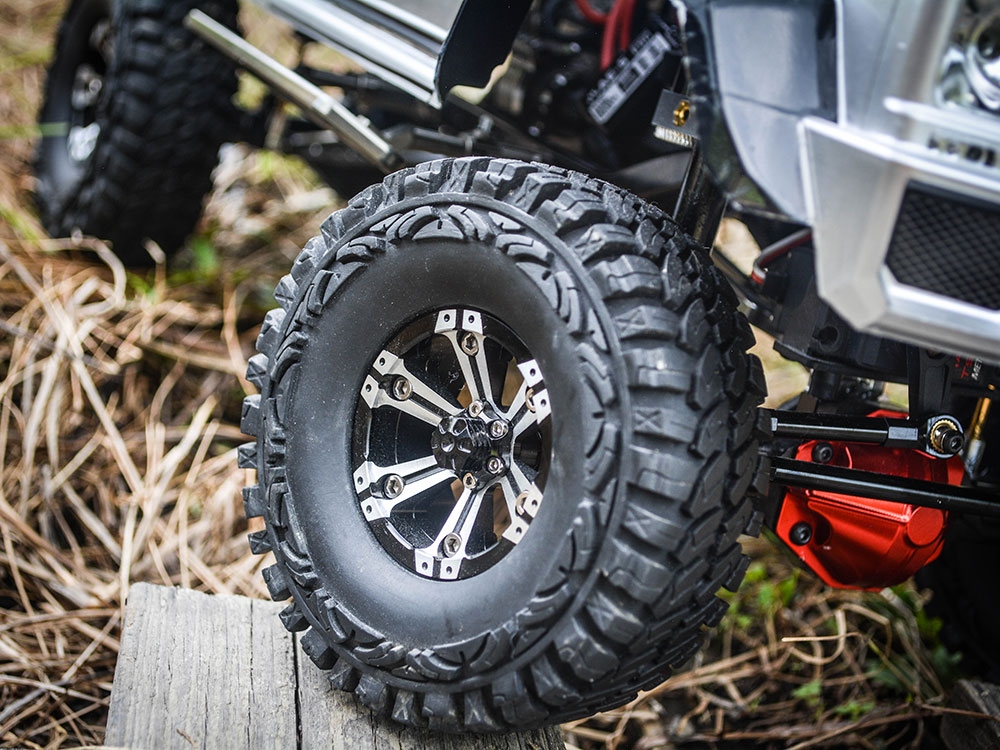 - 1.9" (48mm) heavy-duty anodized aluminum six-spoke beadlock wheels from Boom Racing.