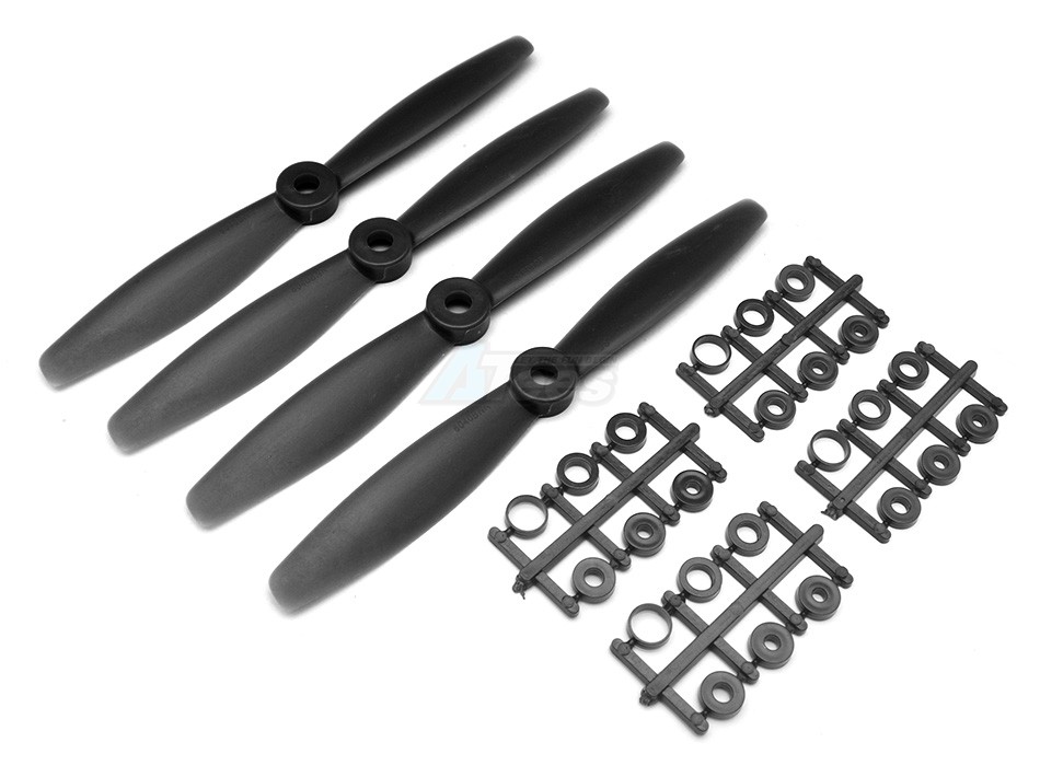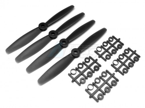 A set of four (4) counter-clockwise Gemfan 6-inch carbon fiber propellers, 2-blade style with a 5mm center hub. These props are much stiffer compared to the plastic version. Includes adapter rings.