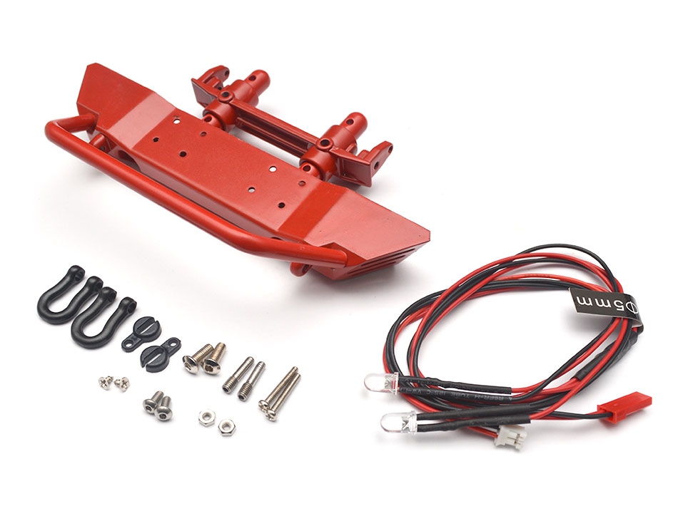 Realistic Metal Front Bumper with Towing Hooks - 1 Set Red