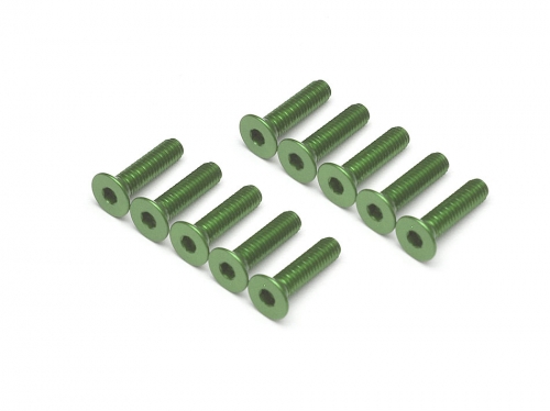 Aluminum 7075 M3x12 Hex Socket Flat Head Screws Bolts (10) Green by Boom Racing