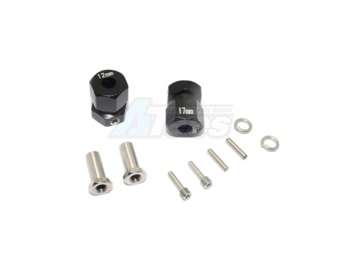 GPM Racing Aluminium Wheel Hex Adapter (Inner 5MM Outer 12MM Thickness 17MM) - 2Pcs Set Black for Axial RR10 Bomber