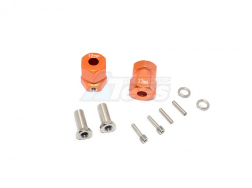 GPM Racing Aluminium Wheel Hex Adapter (Inner 5MM Outer 12MM Thickness 17MM) - 2Pcs Set Orange for Axial RR10 Bomber