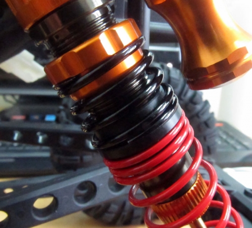- Oil not included Double spring setup for extra progressive damping effect. It has higher range than 1 progressive spring. The effects of one progressive spring is not enough for RC cars as it is much lighter than real cars. Double suspension however gives a good simulation of real car progressive spring effects.