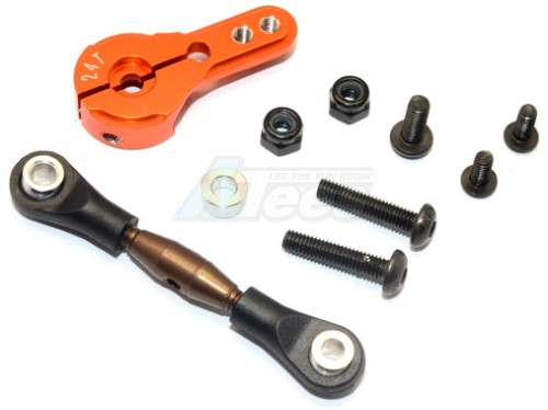 Spring Steel Anti-Thread Tie Rod With Aluminium Servo Horn For 24T Spline Output Shaft - 1Set Orange by GPM Racing