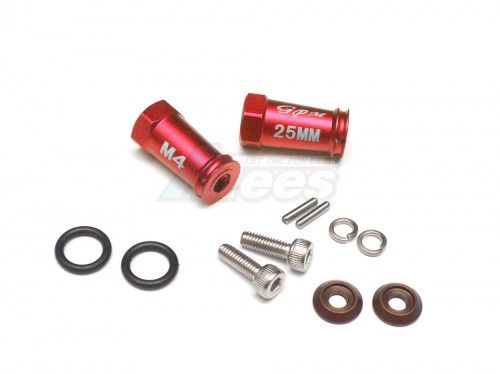 GPM Racing Aluminium Wheel Hex Adapters 25MM Width (Use For 4MM Thread Wheel Shaft & 4MM Hole Wheel) - 1Pair Set Red for Axial SCX10 II