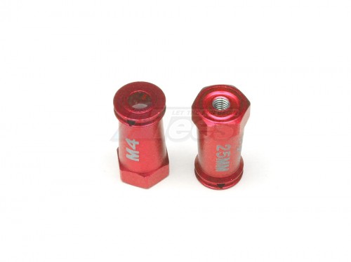 Aluminium Wheel Hex Adapters 25MM Width (Use For 4MM Thread Wheel Shaft & 4MM Hole Wheel) - 1Pair Set Red by GPM Racing
