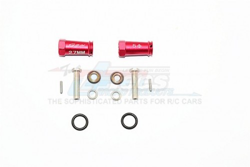 GPM Racing Aluminium Wheel Hex Adapters 27MM Width (Use For 4MM Thread Wheel Shaft & 5MM Hole Wheel) - 1Pair Set Red for Axial SCX10 II